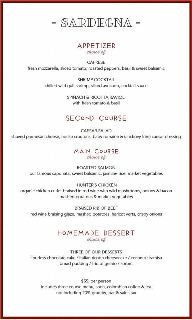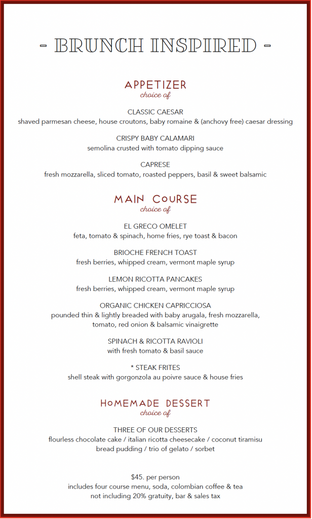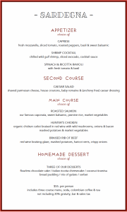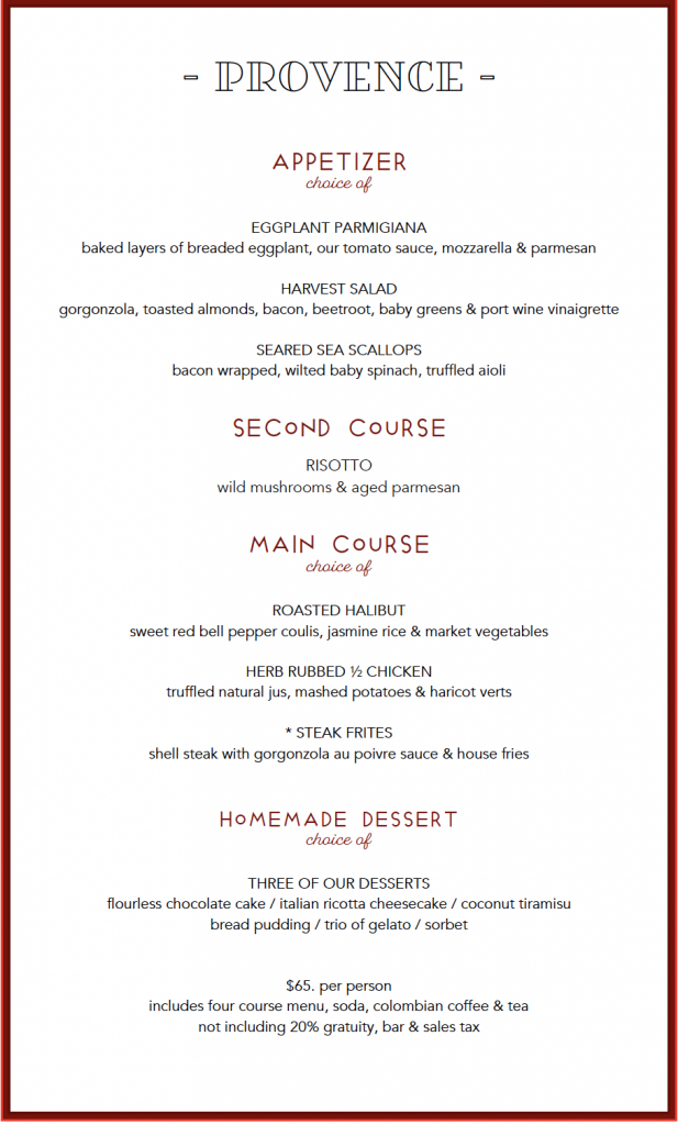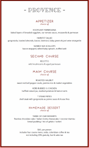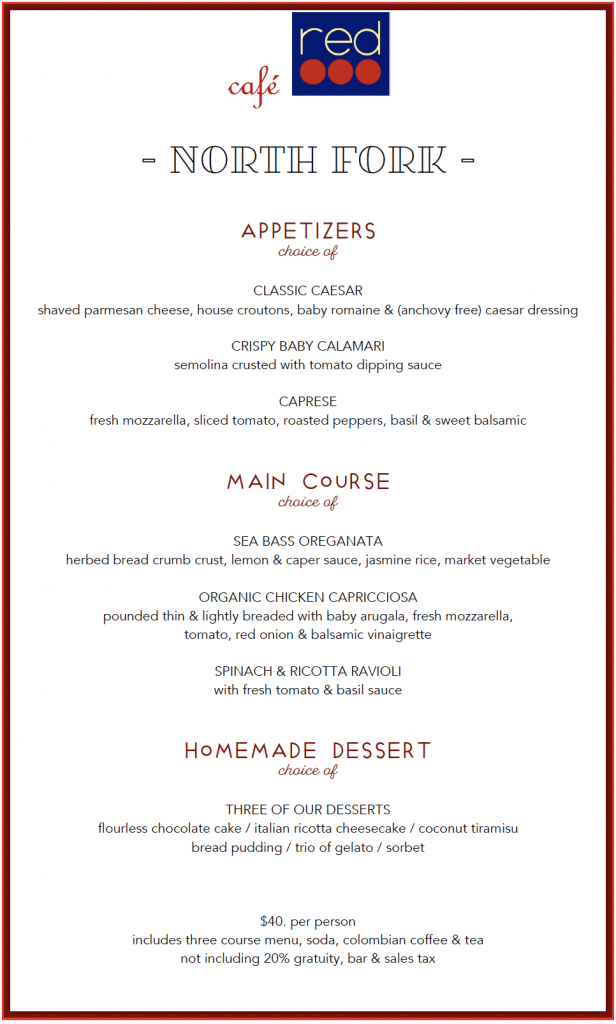 Call us at (631) 544-4500  and we can prepare a three- or four-course prix fixe menu especially for your needs.